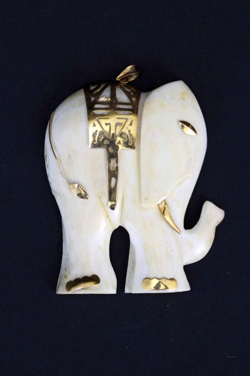 29 Carved Ivory and 14K Gold Elephant Jewelry Slide